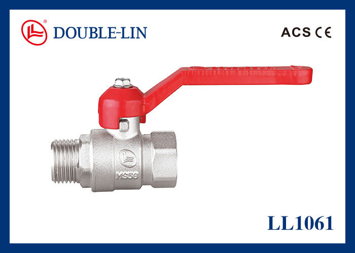 - Válvulas de esferas de latão masculinas x femininas com alça de alavanca plana de ferro.